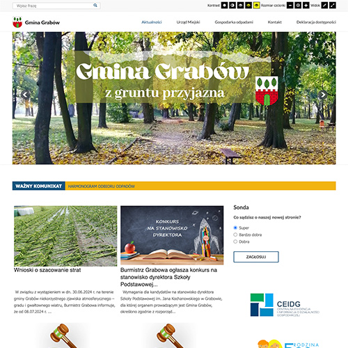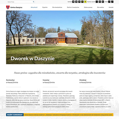Wszystkie strony oparte o system ZMS - zarówno strona główna urzędu, jak i placówek podległych komunikują się ze sobą automatycznie.
